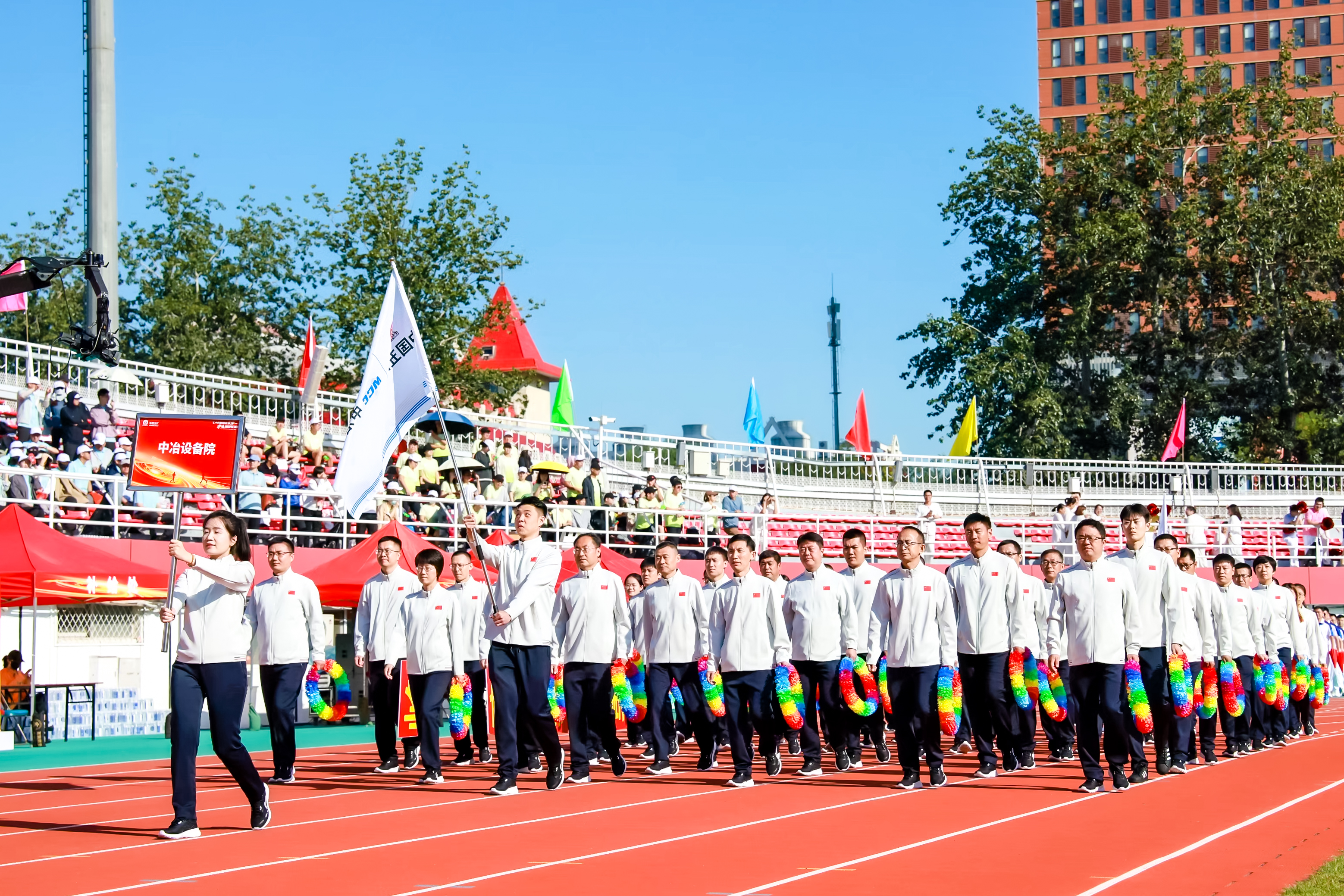 中冶設(shè)備院全體班子成員、各部門各單位運(yùn)動(dòng)健兒共計(jì)70余人參加此次運(yùn)動(dòng)會。開幕式上,公司方陣步伐鏗鏘、意氣風(fēng)發(fā),“創(chuàng)新引領(lǐng)、勇攀高峰”口號響徹碧空,隊(duì)員們手擎七彩花環(huán)明艷律動(dòng),同心共賀集團(tuán)公司75周年華誕。