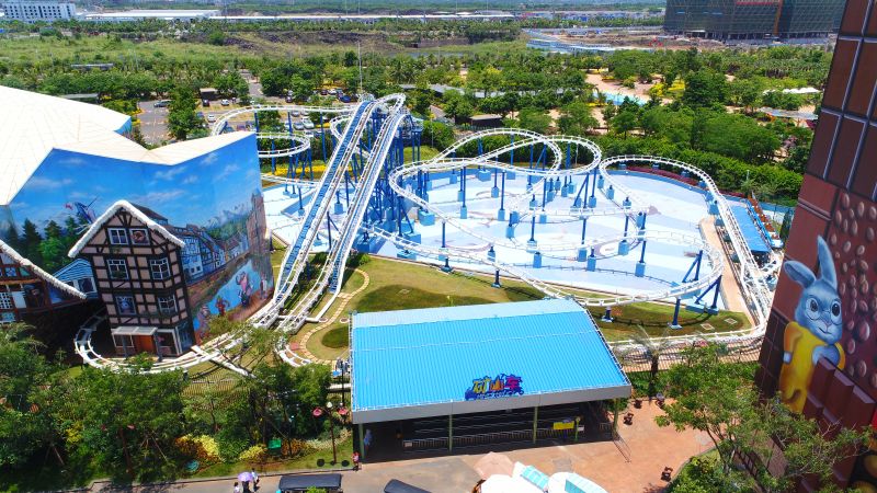項(xiàng)目亮點(diǎn):是目前世界上環(huán)數(shù)最多的過山車,其軌跡的設(shè)計計算、軌道的制作安裝具有極高的難度。